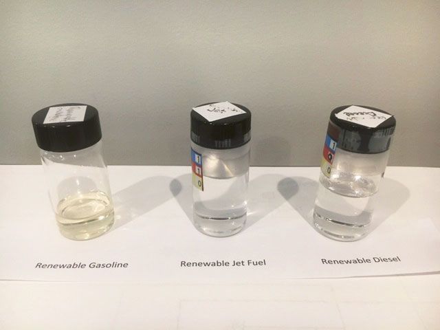Renewable jet fuel is clearer than renewable gasoline and renewable diesel. (Courtesy of World Energy)